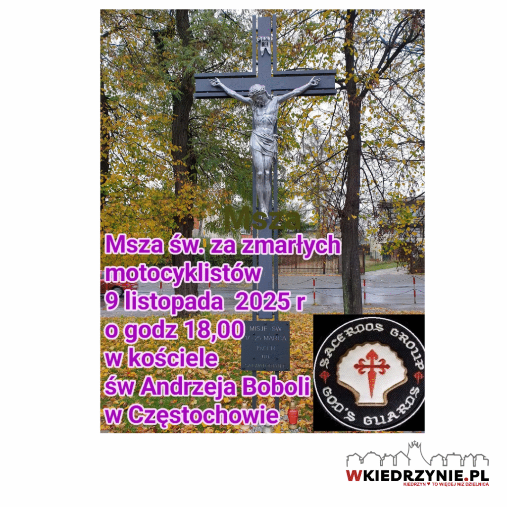 Tradycyjnie, jak co roku, 9 listopada o godz. 18.00 w kościele św. Andrzeja Boboli w Kiedrzynie odbędzie się Msza Święta w intencji zmarłych uczestników motocyklowej braci. Zapraszamy wszystkich motocyklistów, ich rodziny, przyjaciół oraz wszystkich, którzy pragną wspólnie pomodlić się za tych, którzy odeszli na wieczny szlak.