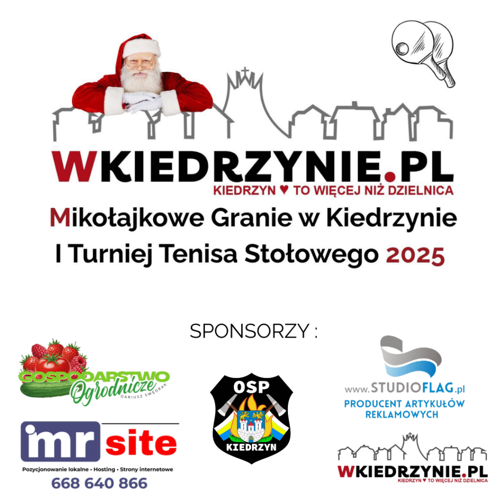 Wierzę, że Mikołajkowy Turniej Tenisa Stołowego będzie stałym punktem w kalendarzu naszych dzielnicowych wydarzeń – podobnie jak Mistrzostwa w Piłce Nożnej Dzielnicy Kiedrzyn, których II edycja odbędzie się już 12 września przyszłego roku na boisku Orła Kiedrzyn!
