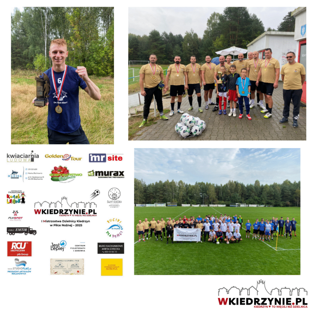 Zwycięzcami turnieju została drużyna OSP Kiedrzyn, która w emocjonującym finale pokonała drużynę Parafii św. Brata Alberta w Kiedrzynie. Królem strzelców został Maciej Lechowski, zdobywając łącznie 4 bramki – gratulacje! W zawodach udział wzięło 81 zawodniczek i zawodników tworzących 8 drużyn – dziękujemy wszystkim za sportową rywalizację i wspaniałą atmosferę! Specjalne podziękowania kierujemy do sponsorów oraz wszystkich osób zaangażowanych w organizację turnieju – bez Was to wydarzenie nie mogłoby się odbyć!